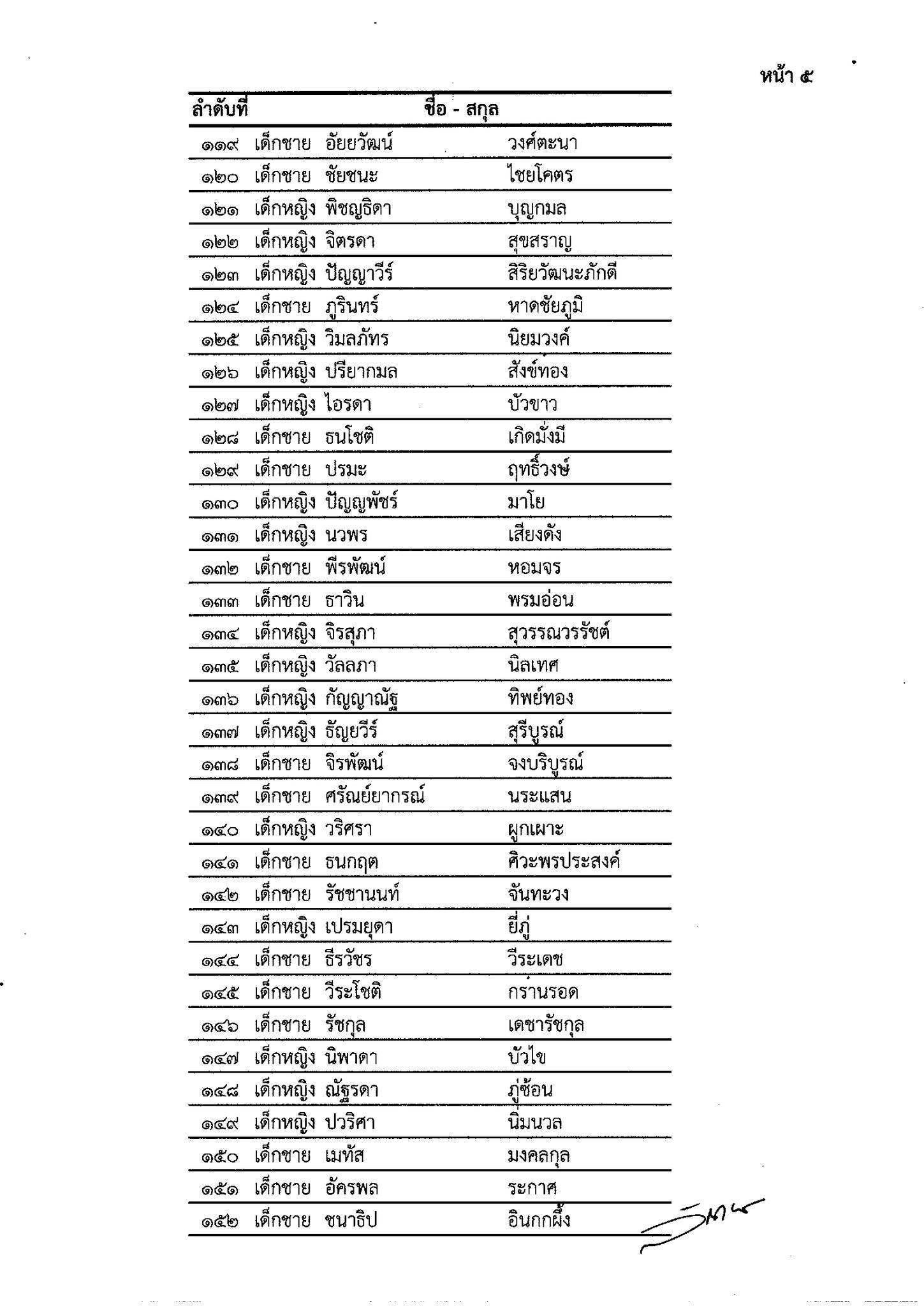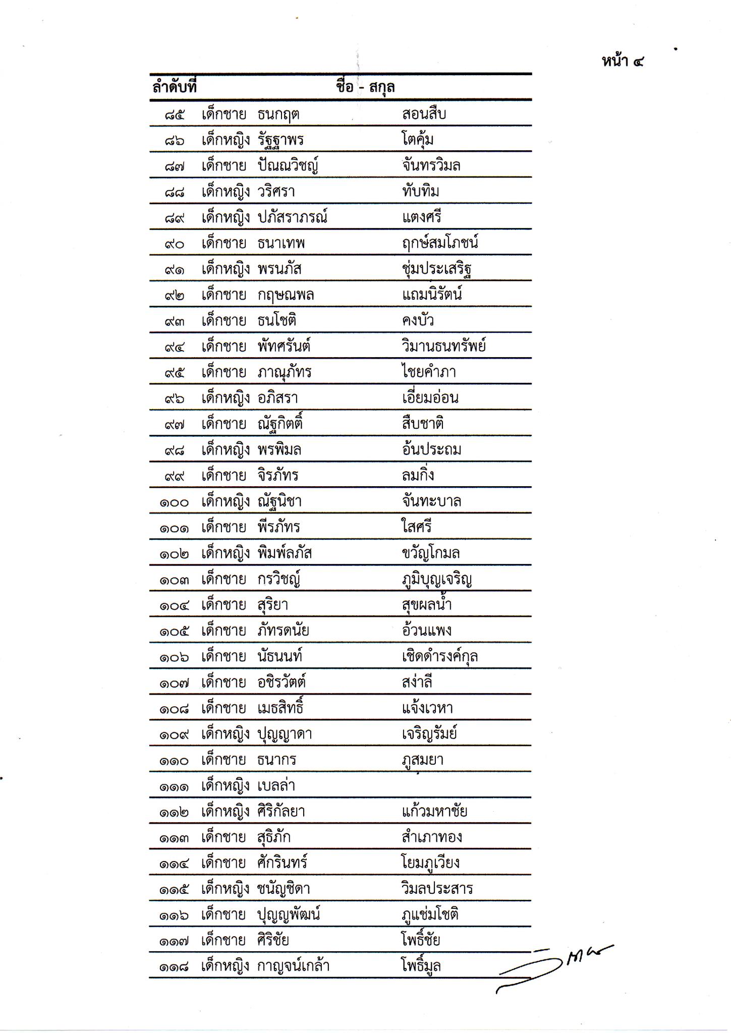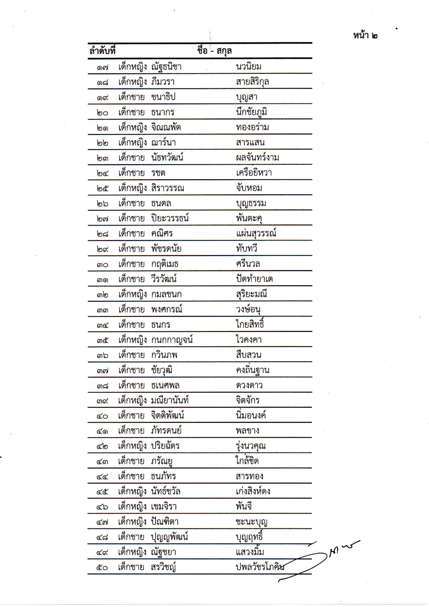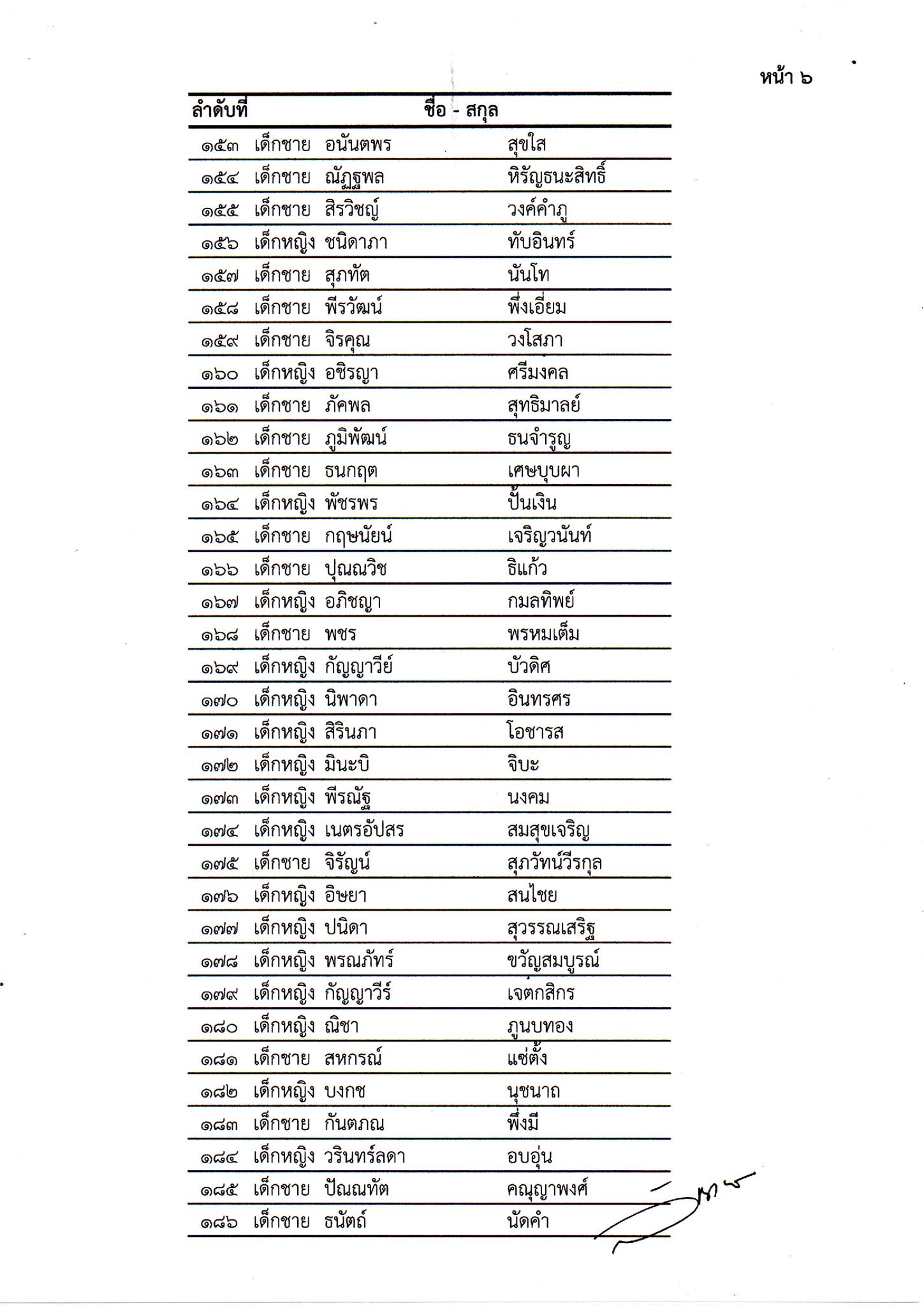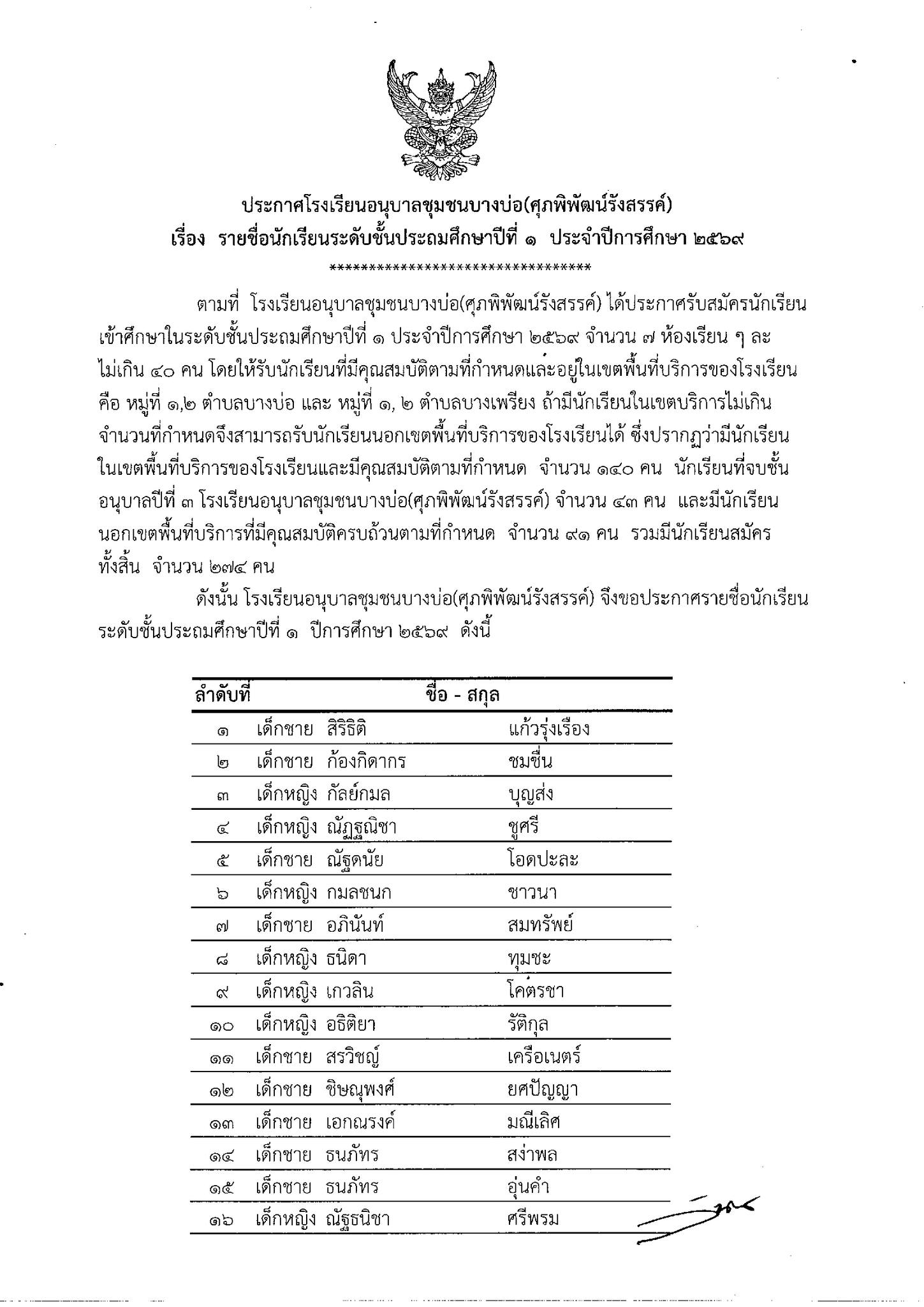 รายชื่อนักเรียนชั้นประถมศึกษาปีที่ 1 ประจำปีการศึกษา 2569