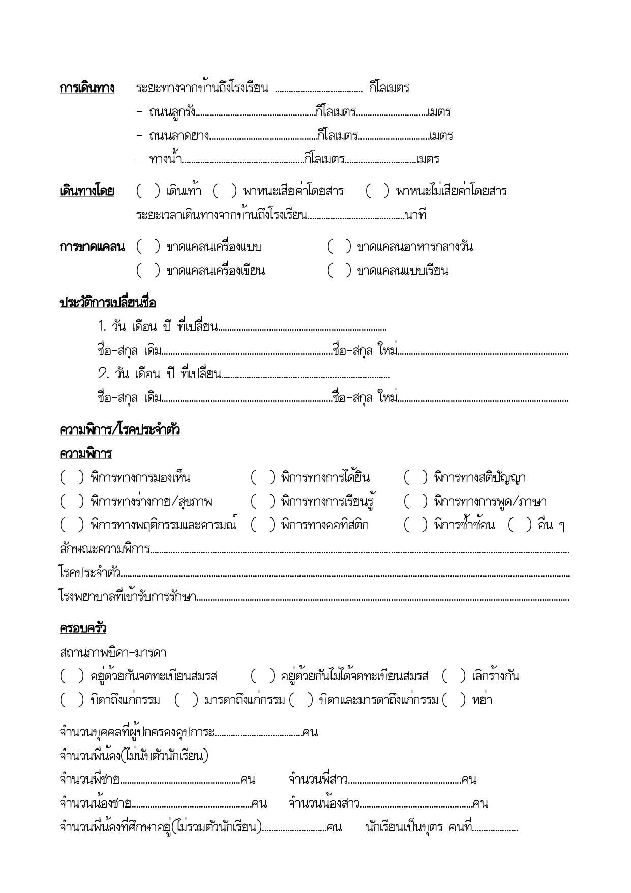แบบกรอกข้อมูลสมัครเข้าเรียน ปีการศึกษา 2569