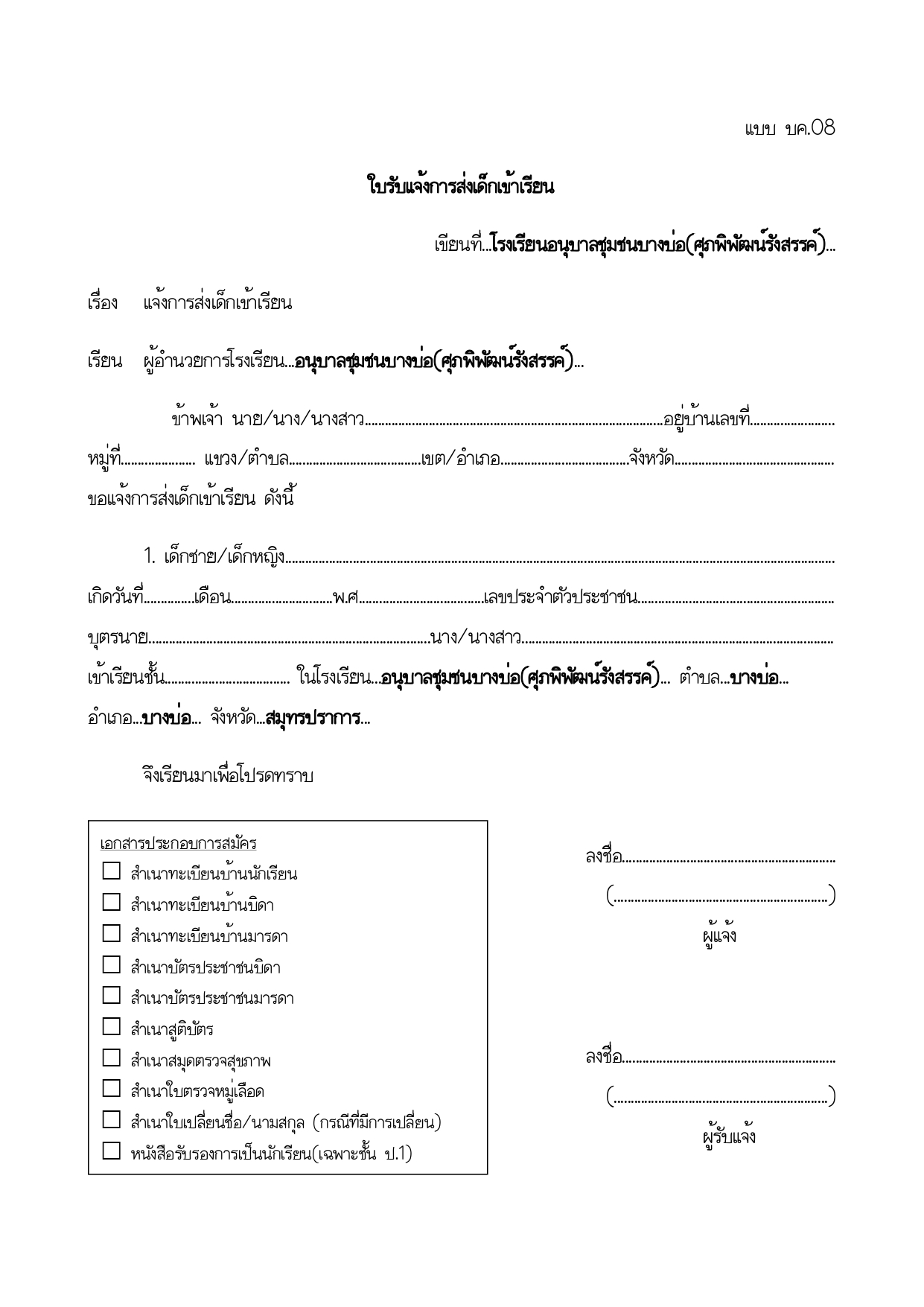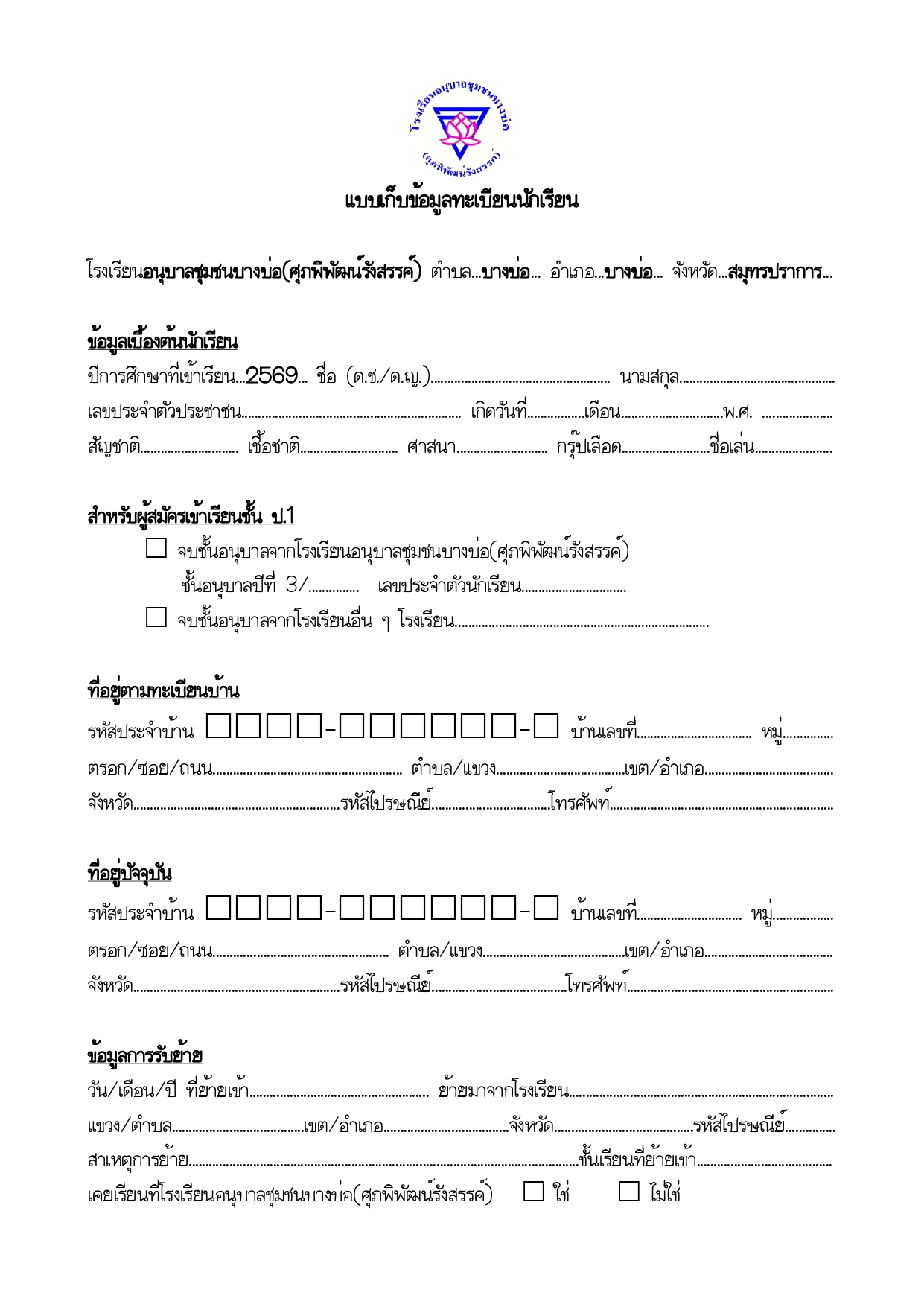 แบบกรอกข้อมูลสมัครเข้าเรียน ปีการศึกษา 2569