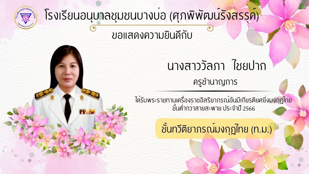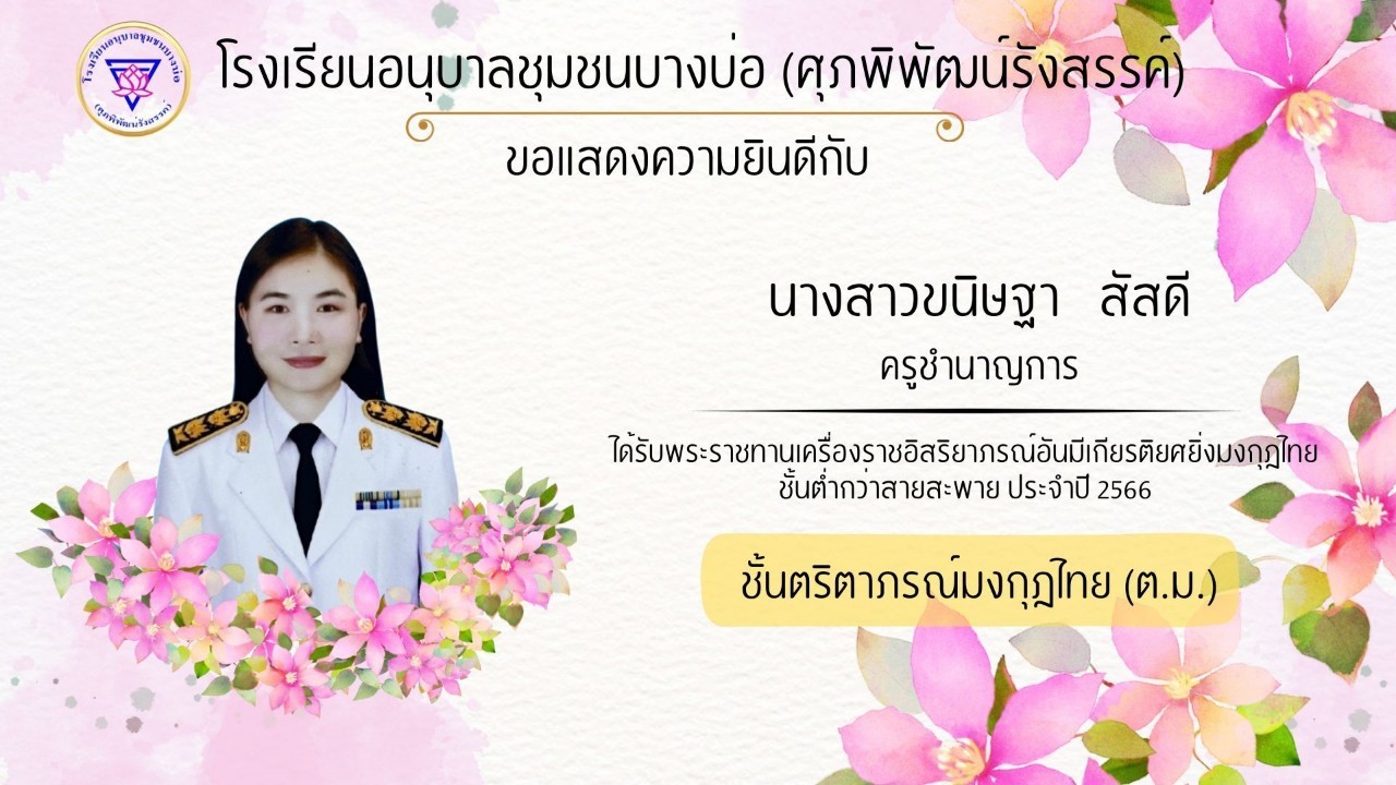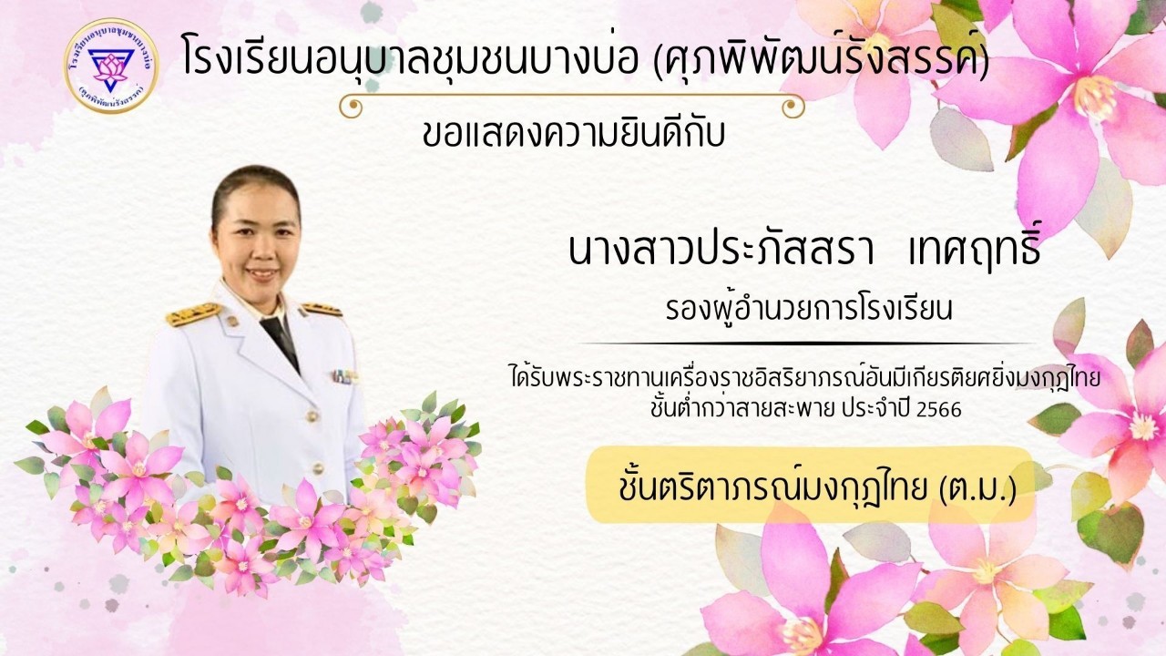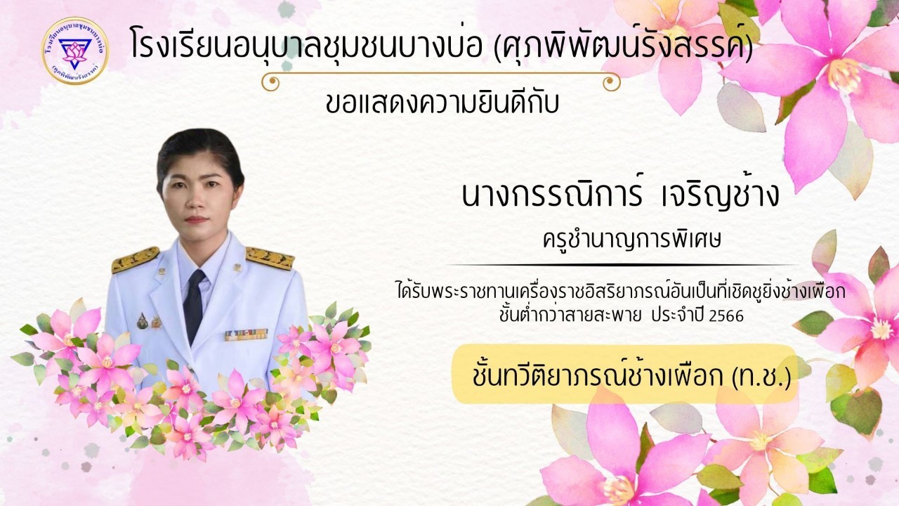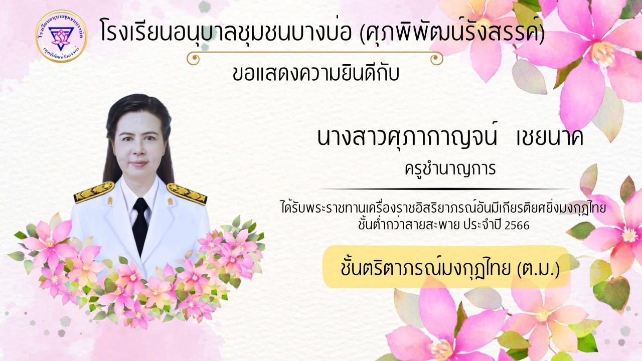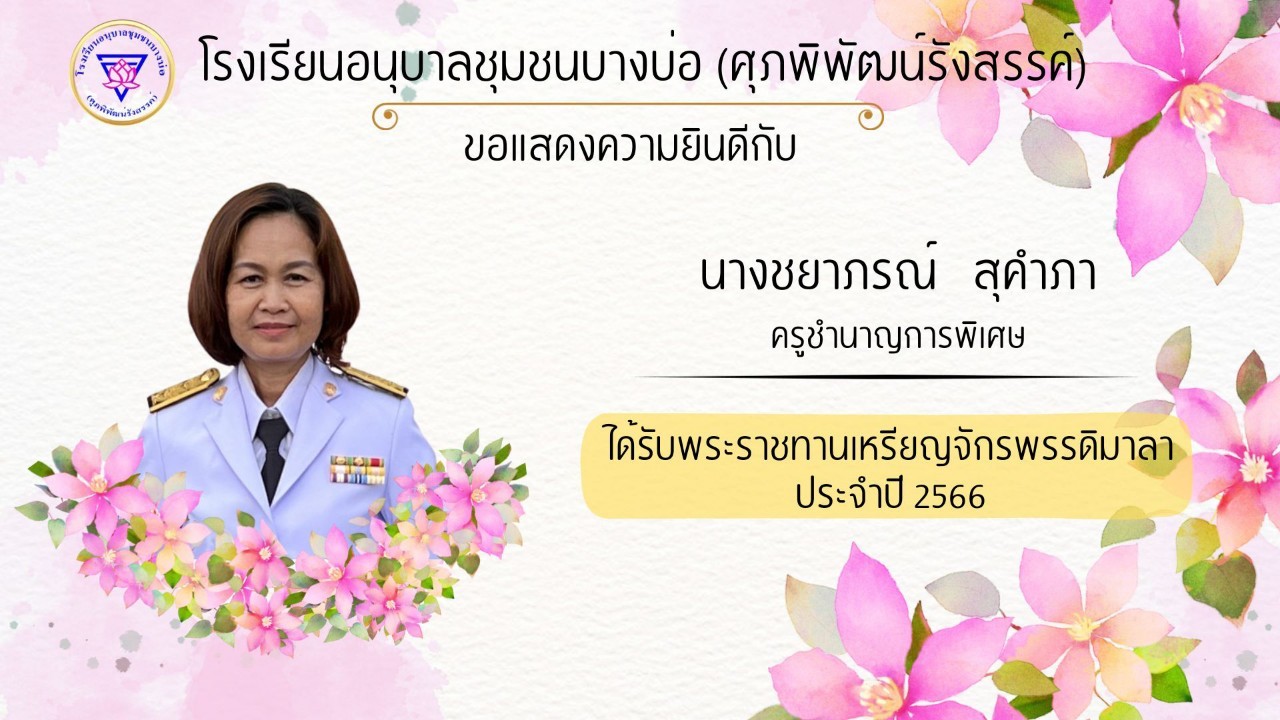 โรงเรียนอนุบาลชุมชนบางบ่อ(ศุภพิพัฒน์รังสรรค์) ขอแสดงความยินดีกับคณะครูที่ได้รับพระราชทานเครื่องราชอิสริยาภรณ์ ประจำปี 2566-2567