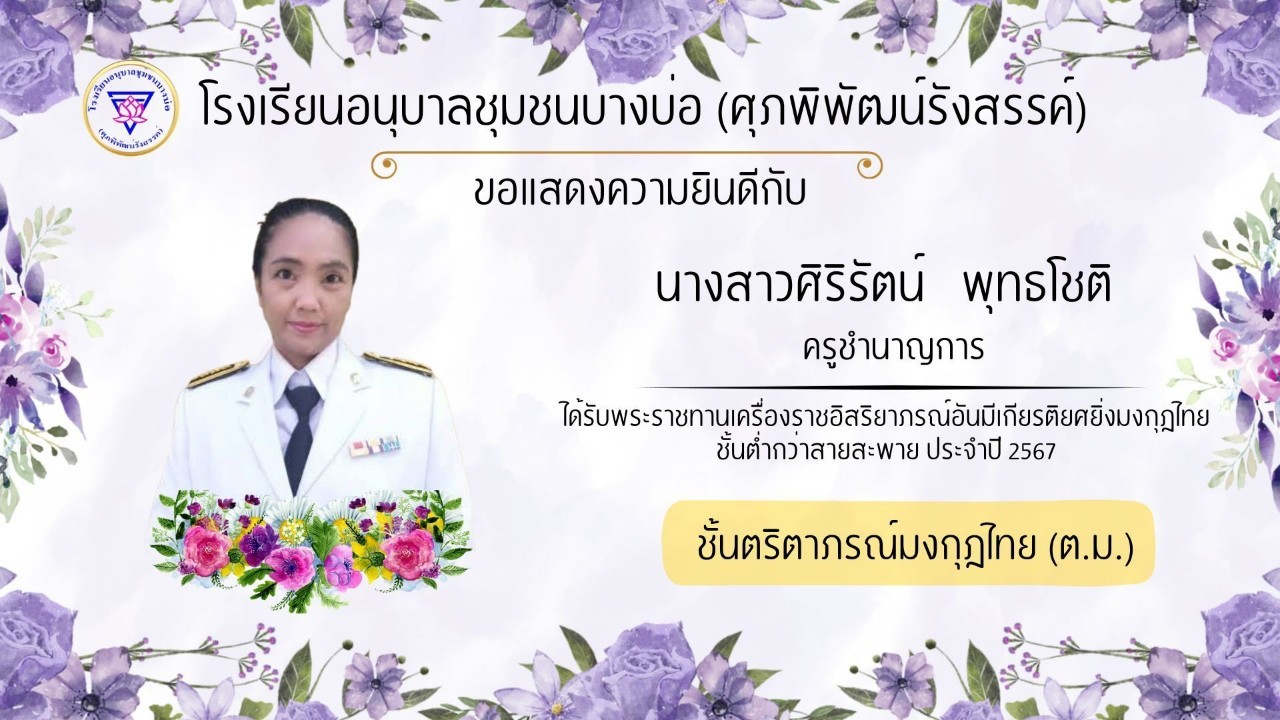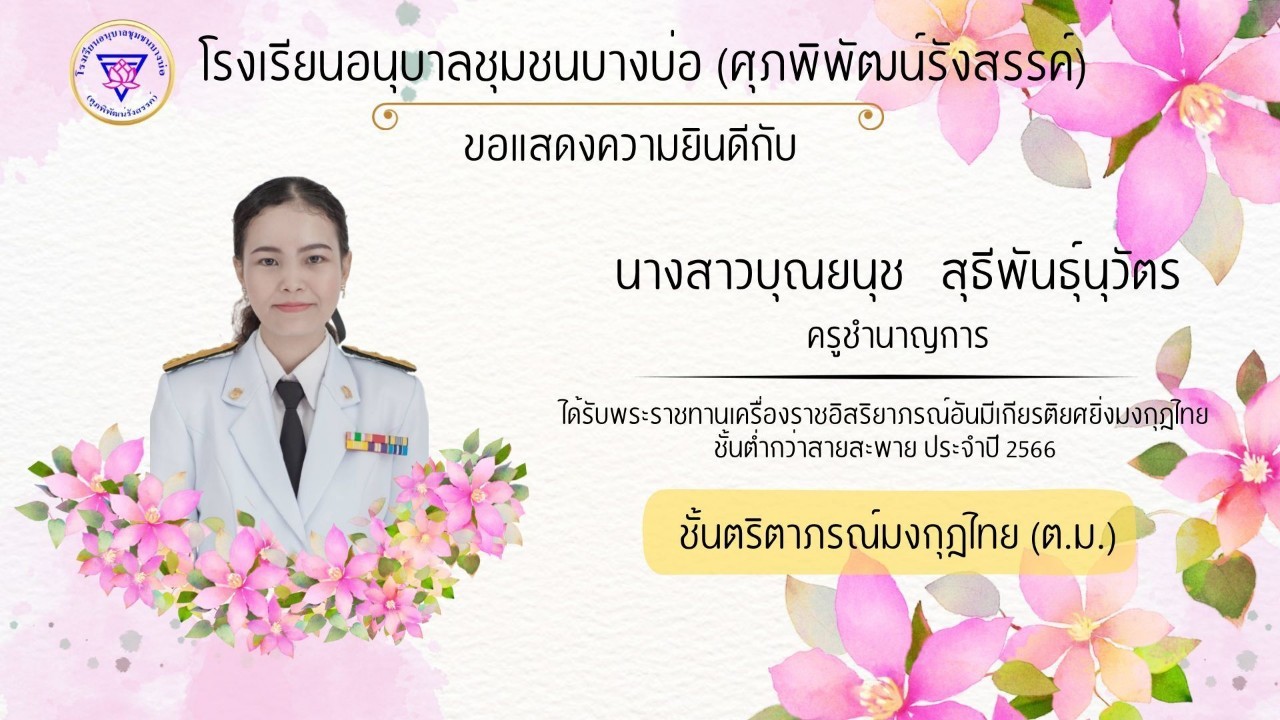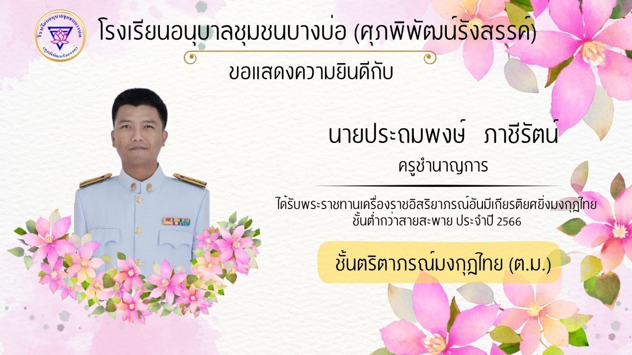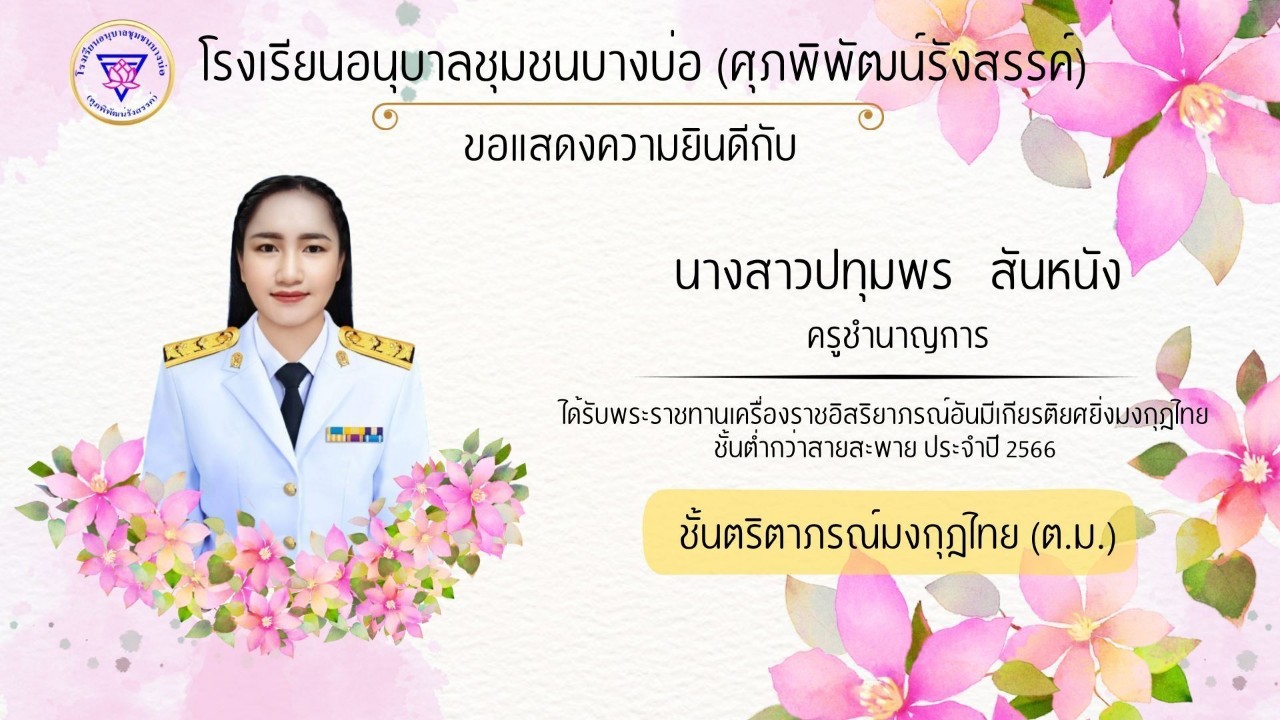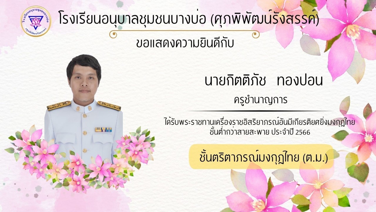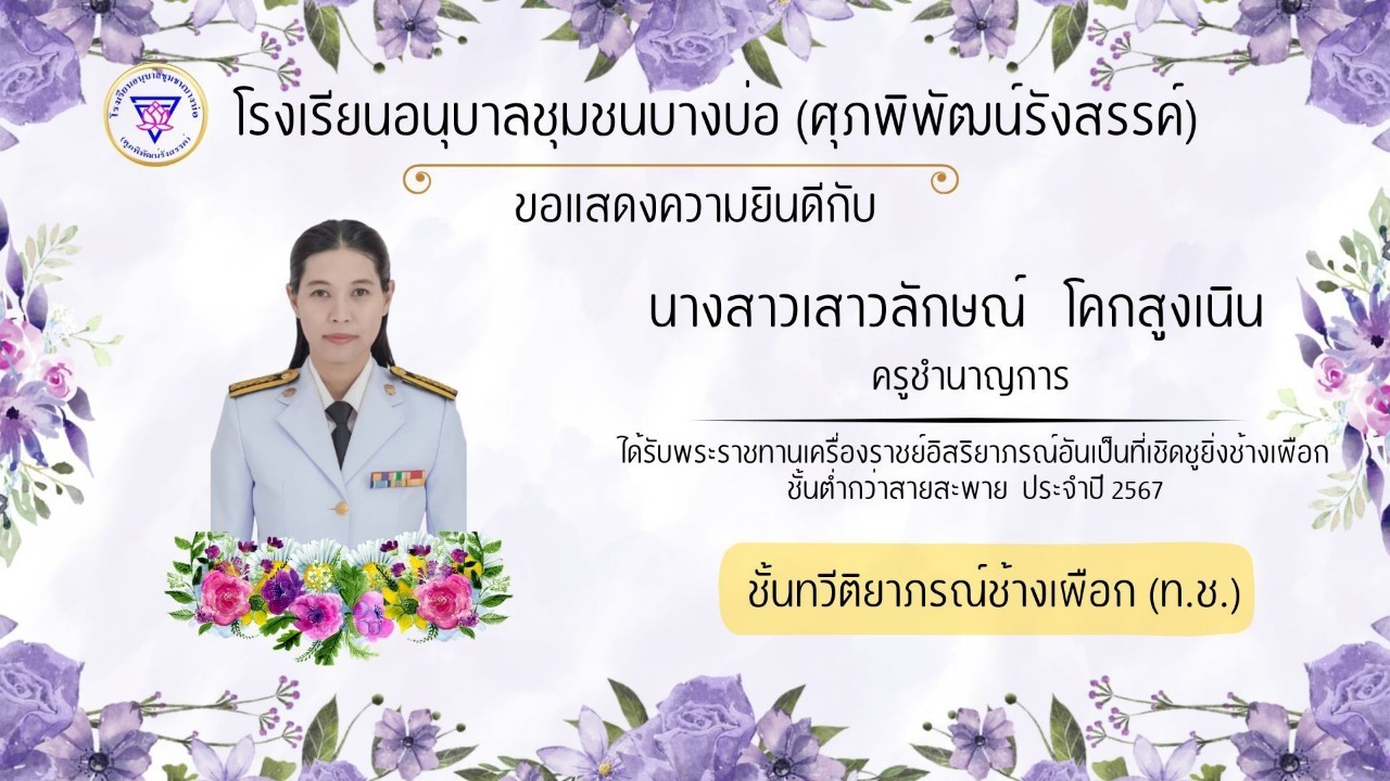 โรงเรียนอนุบาลชุมชนบางบ่อ(ศุภพิพัฒน์รังสรรค์) ขอแสดงความยินดีกับคณะครูที่ได้รับพระราชทานเครื่องราชอิสริยาภรณ์ ประจำปี 2566-2567