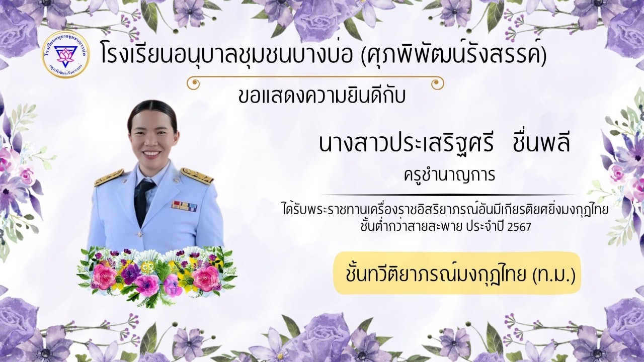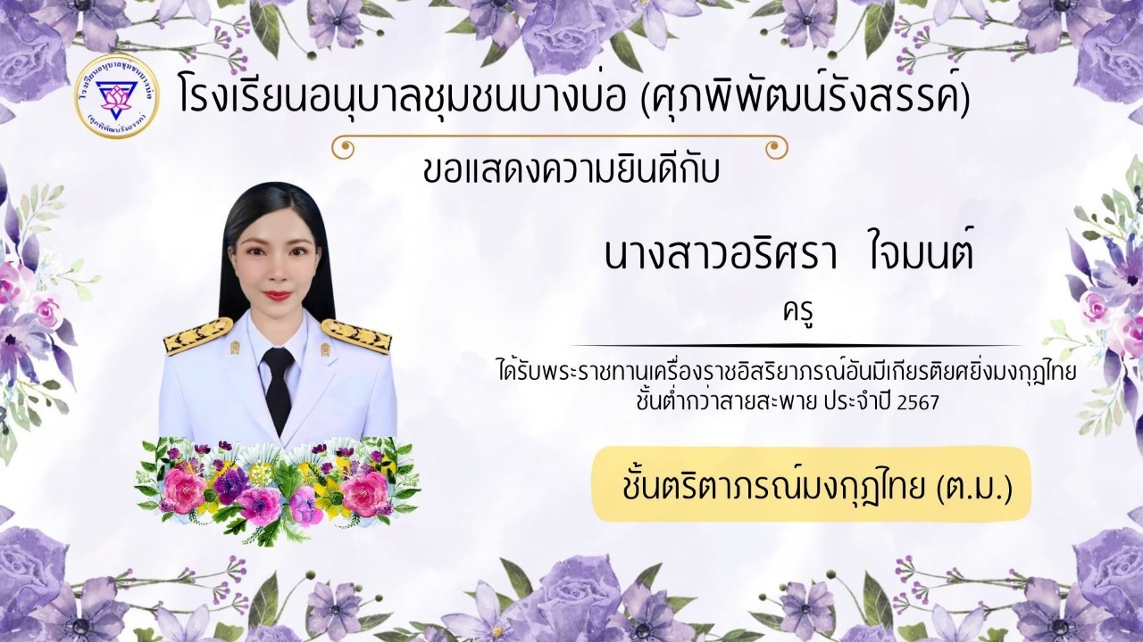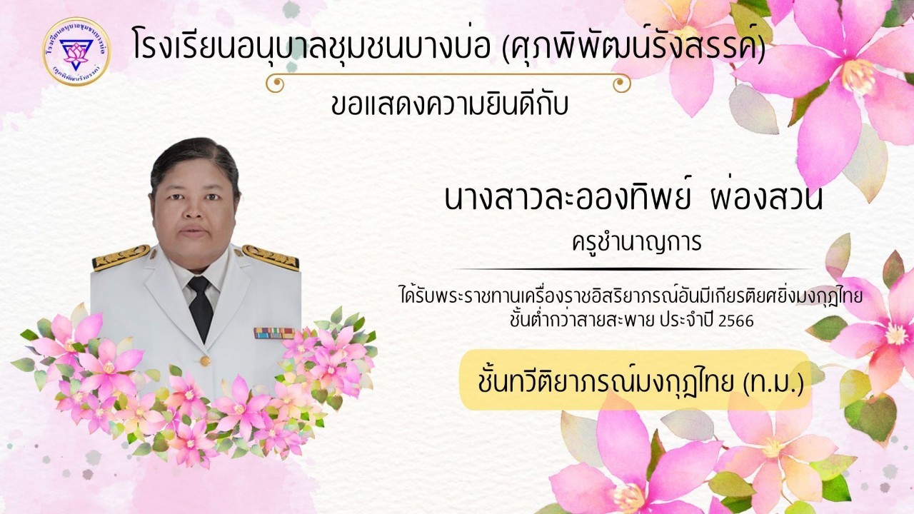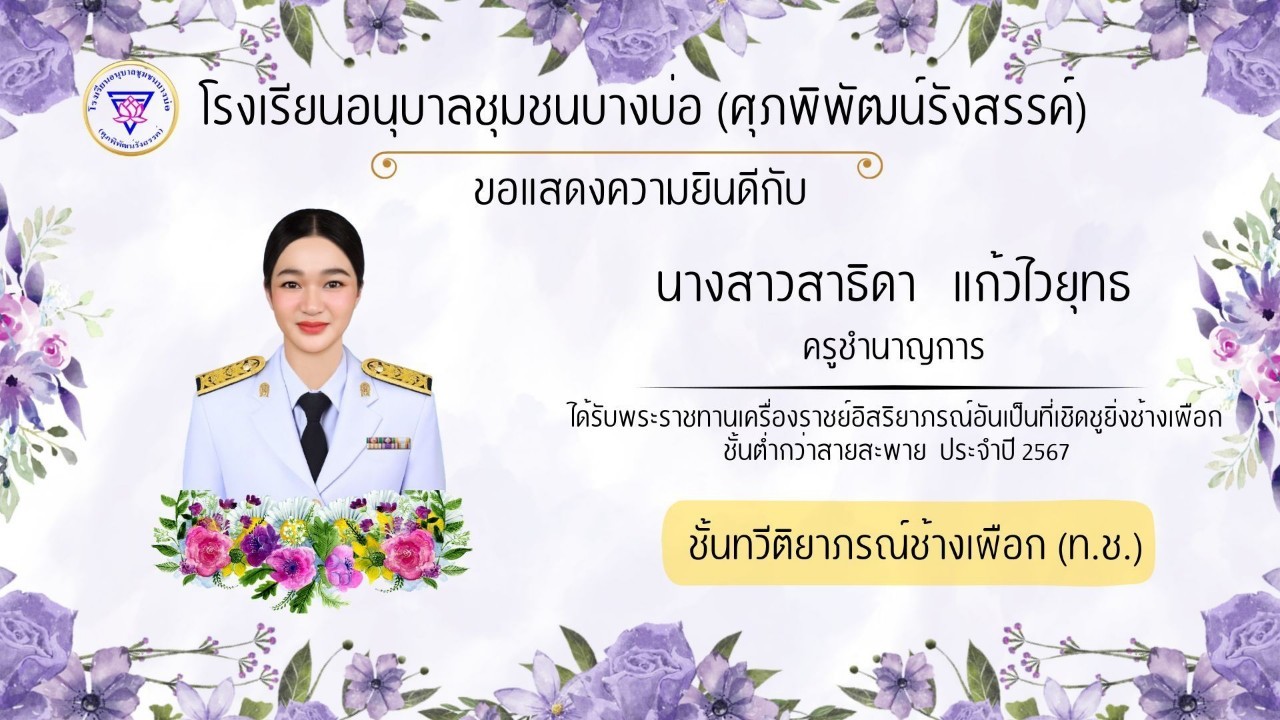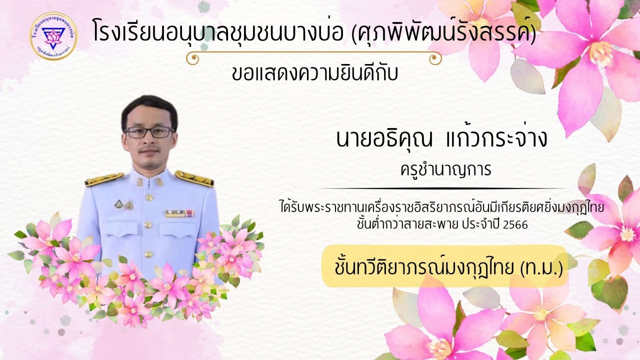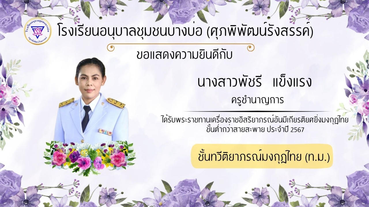 โรงเรียนอนุบาลชุมชนบางบ่อ(ศุภพิพัฒน์รังสรรค์) ขอแสดงความยินดีกับคณะครูที่ได้รับพระราชทานเครื่องราชอิสริยาภรณ์ ประจำปี 2566-2567