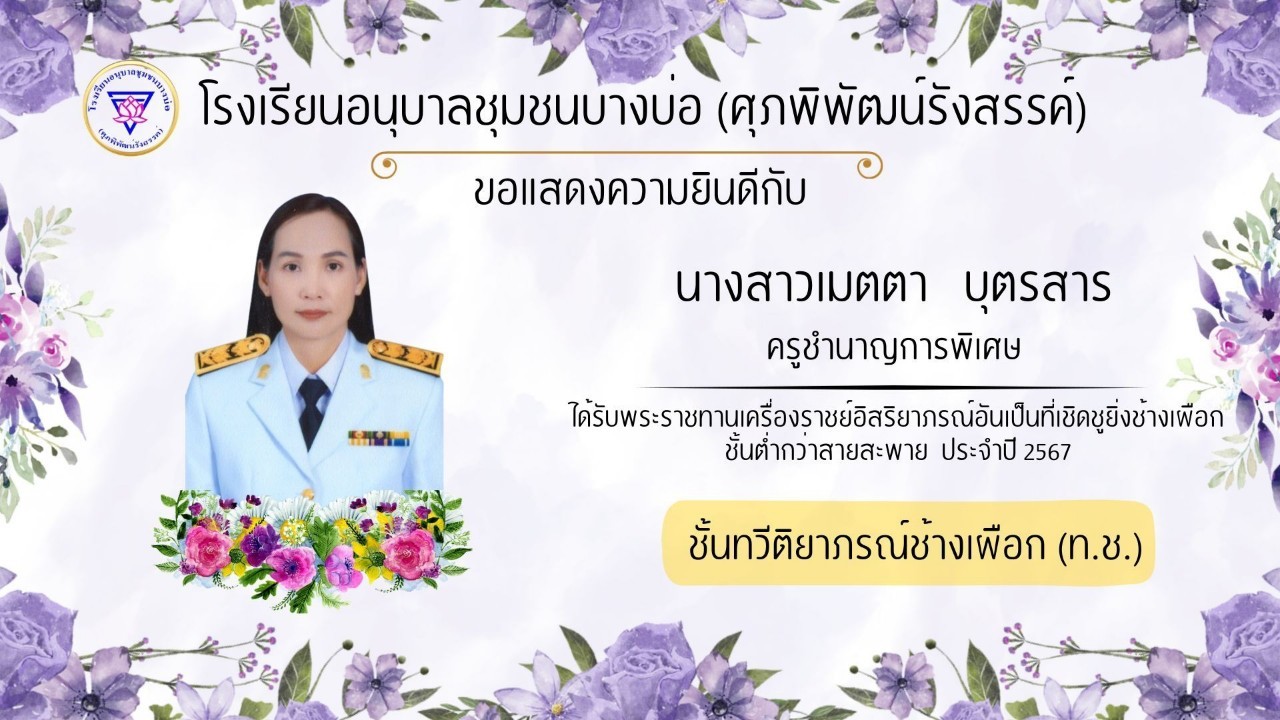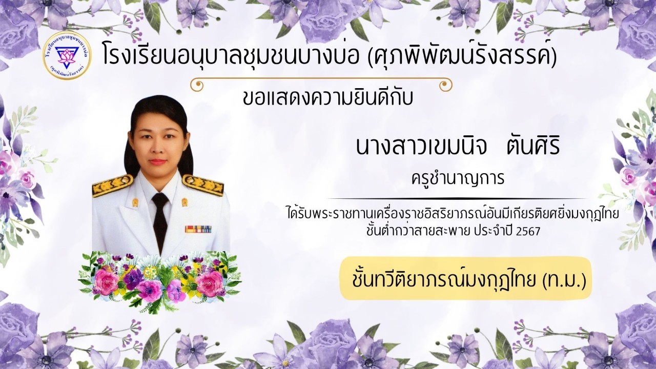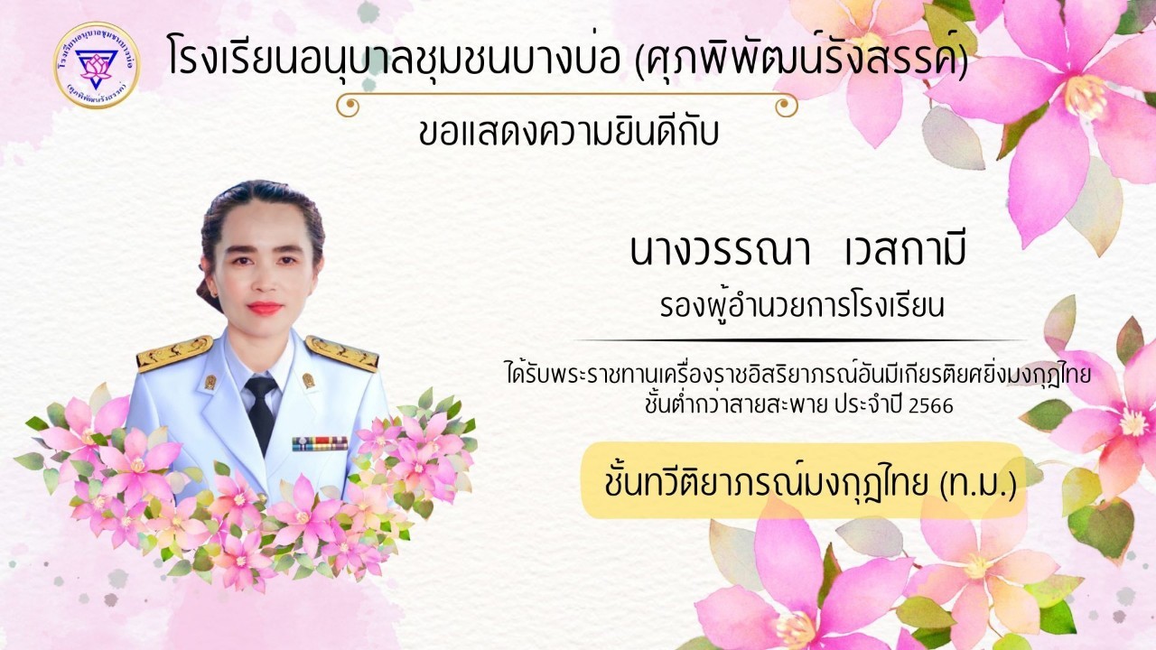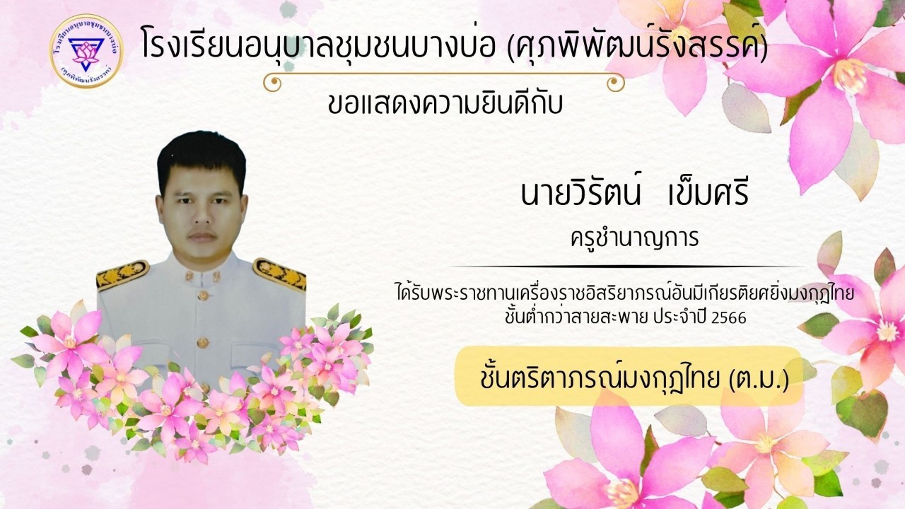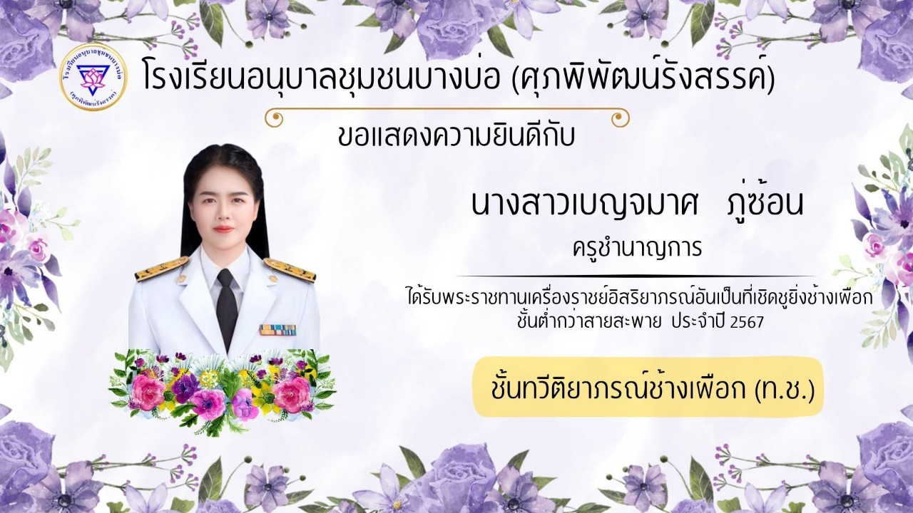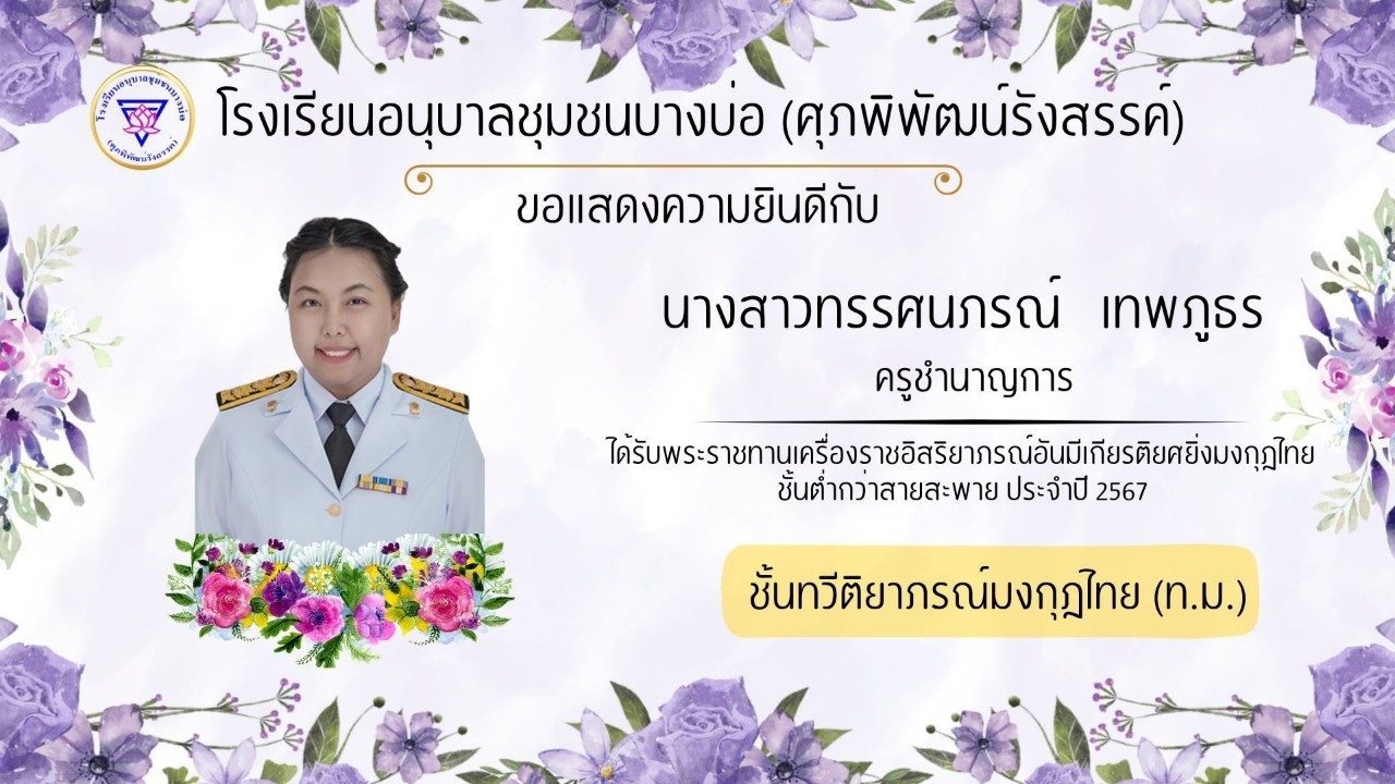 โรงเรียนอนุบาลชุมชนบางบ่อ(ศุภพิพัฒน์รังสรรค์) ขอแสดงความยินดีกับคณะครูที่ได้รับพระราชทานเครื่องราชอิสริยาภรณ์ ประจำปี 2566-2567