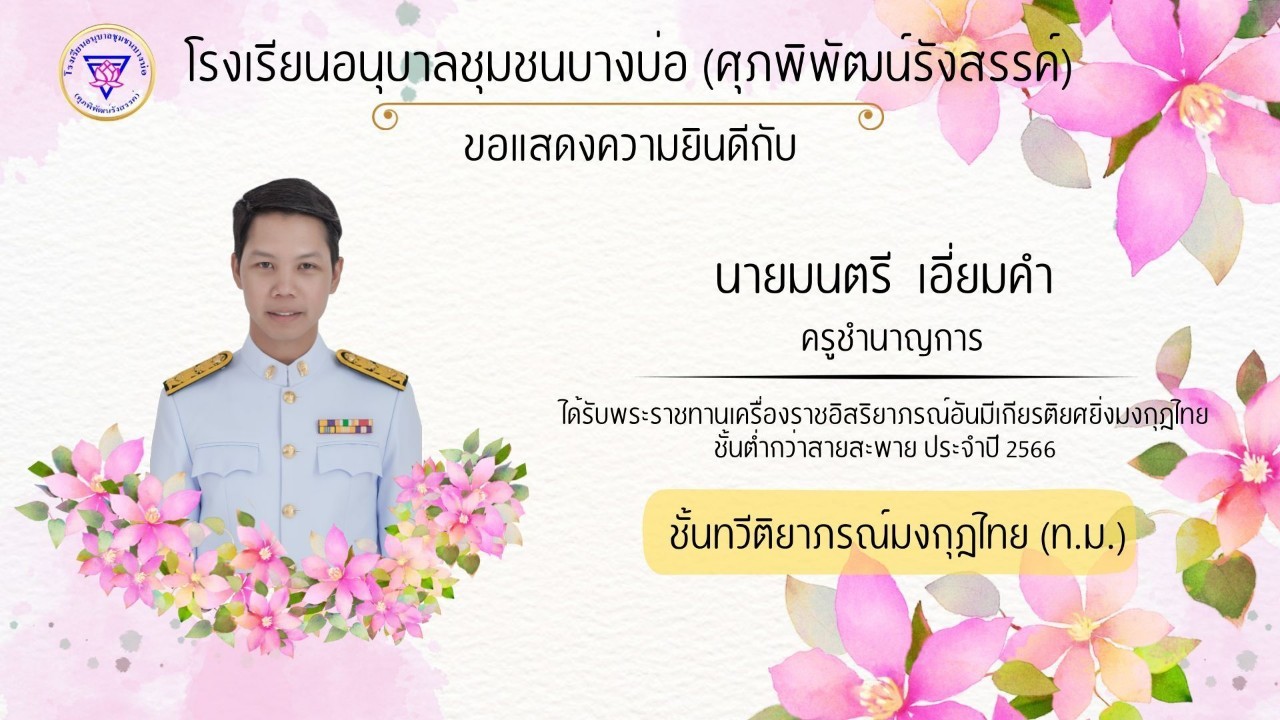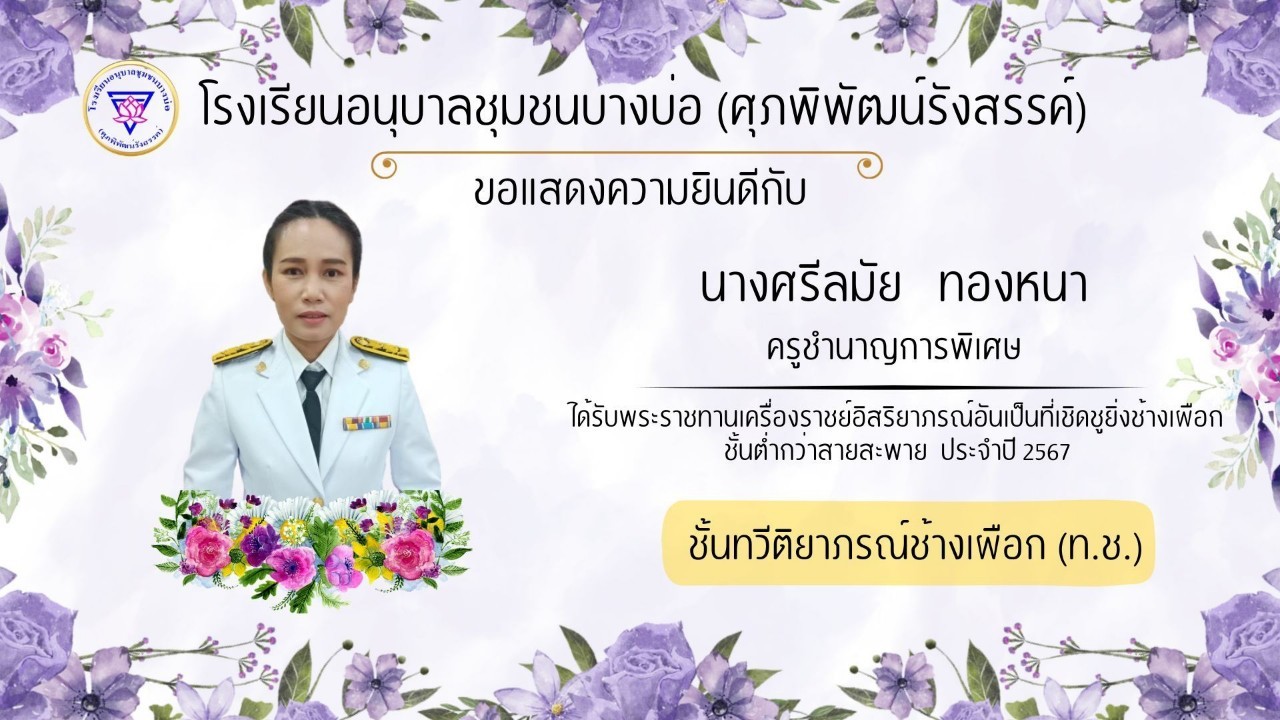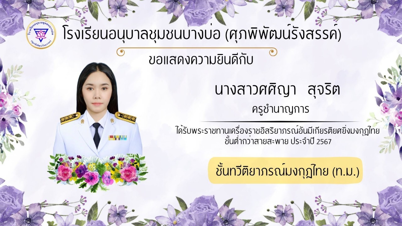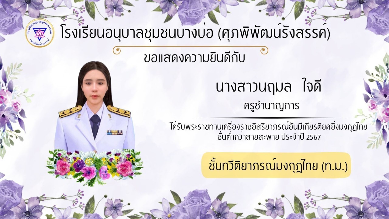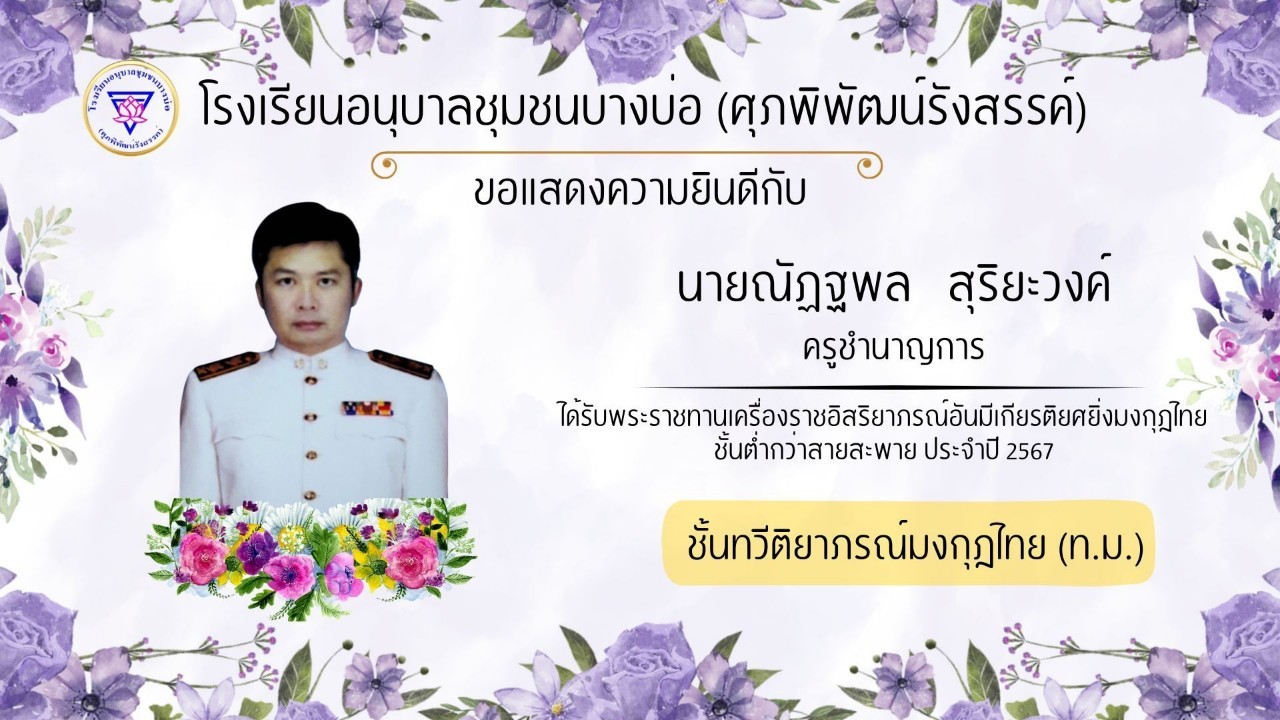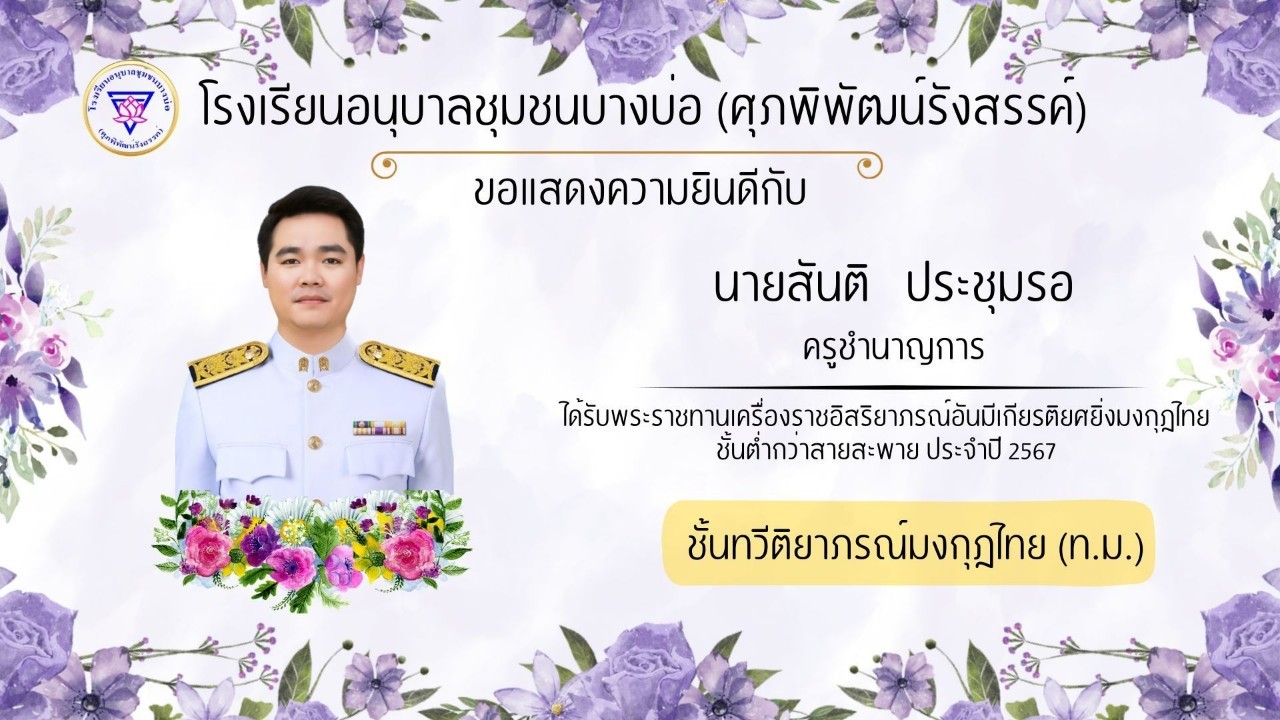 โรงเรียนอนุบาลชุมชนบางบ่อ(ศุภพิพัฒน์รังสรรค์) ขอแสดงความยินดีกับคณะครูที่ได้รับพระราชทานเครื่องราชอิสริยาภรณ์ ประจำปี 2566-2567