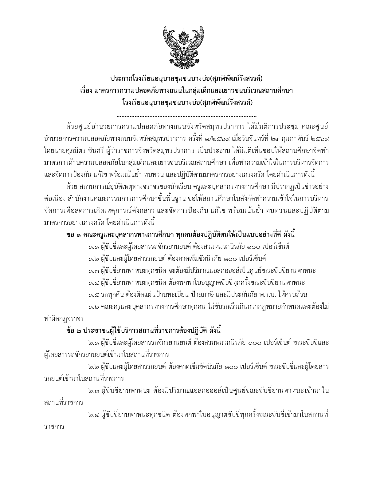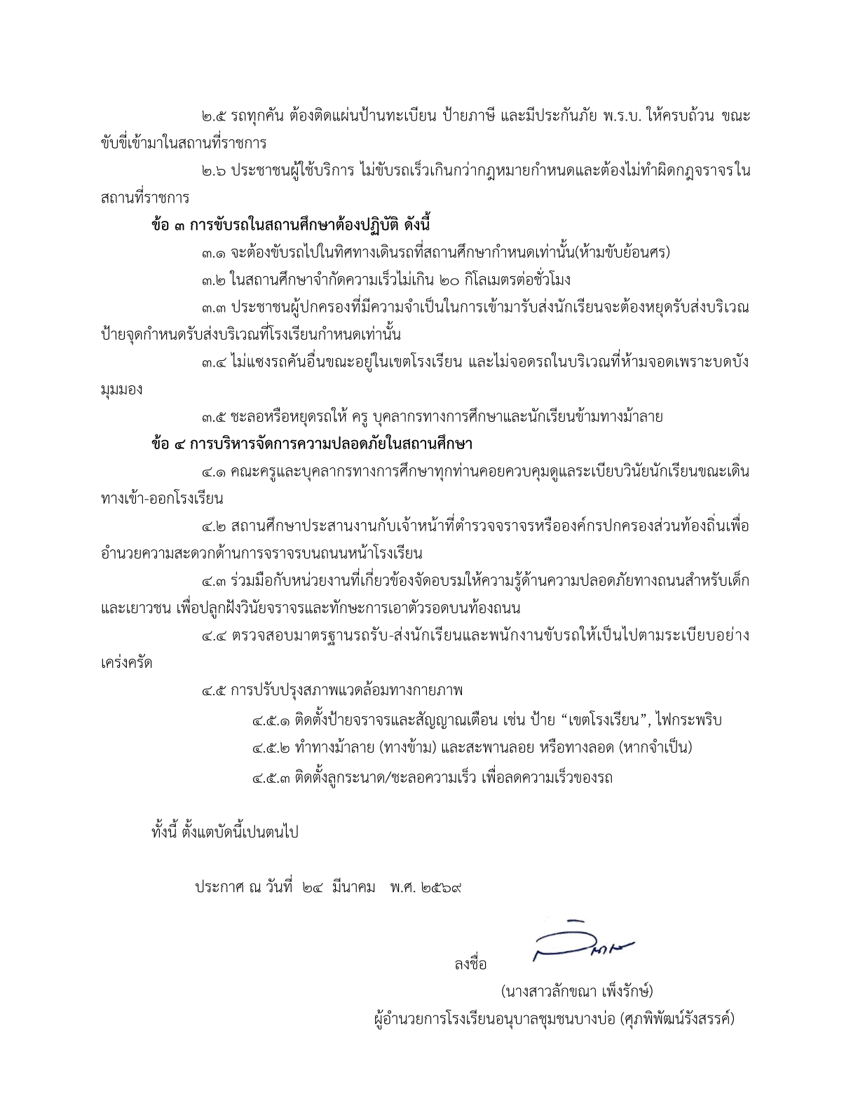ประกาศมาตรการความปลอดภัยทางถนนในกลุ่มเด็กและเยาวชนบริเวณสถานศึกษา