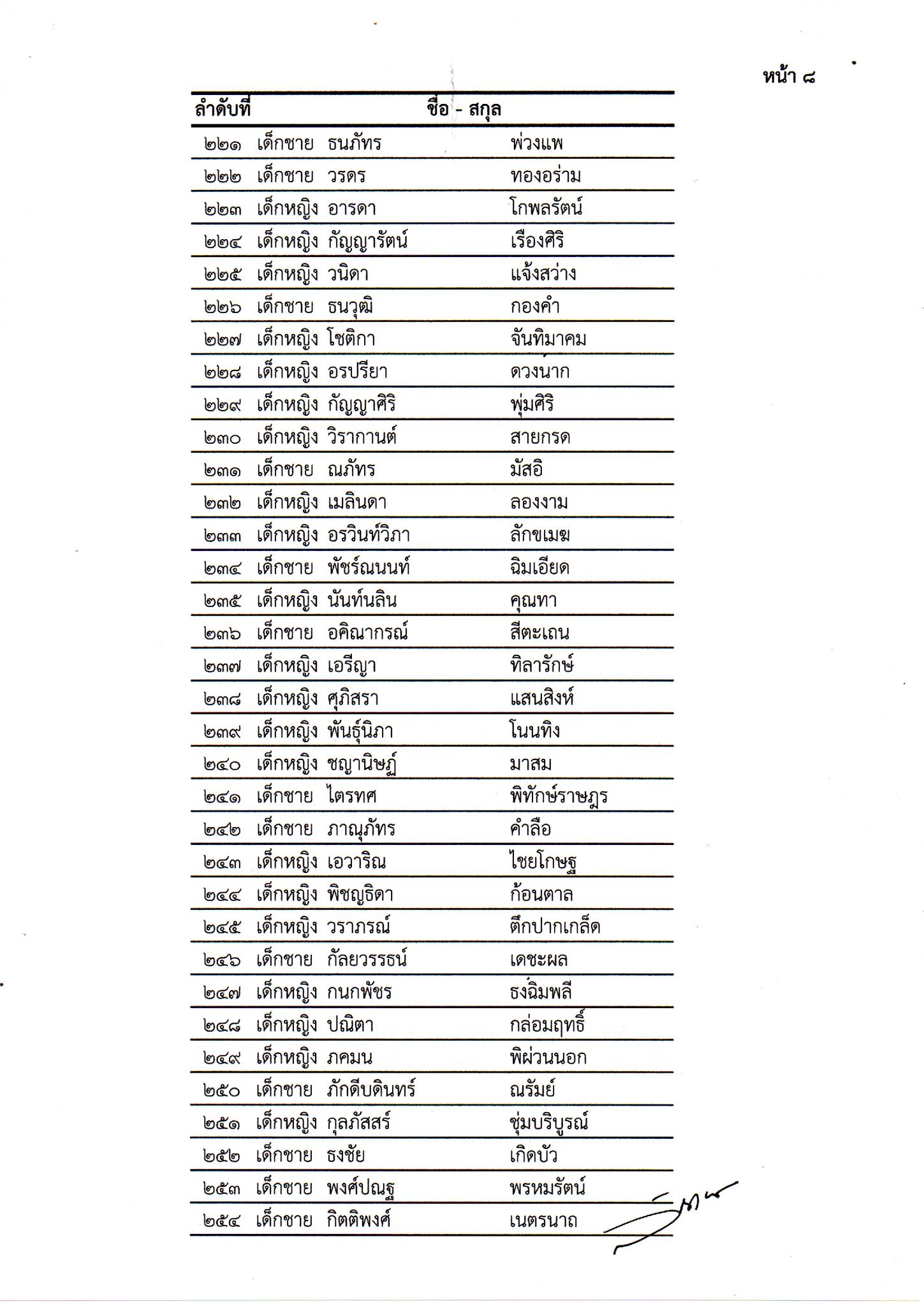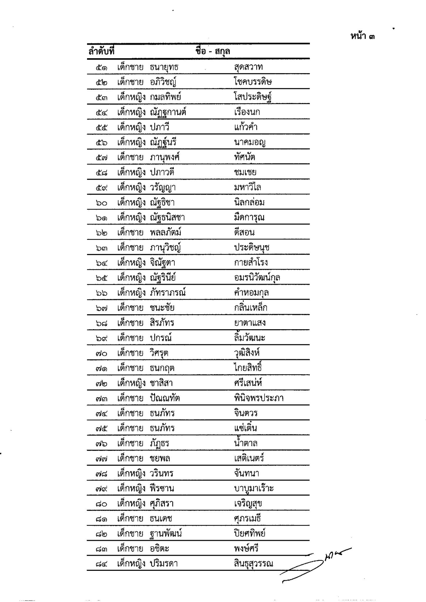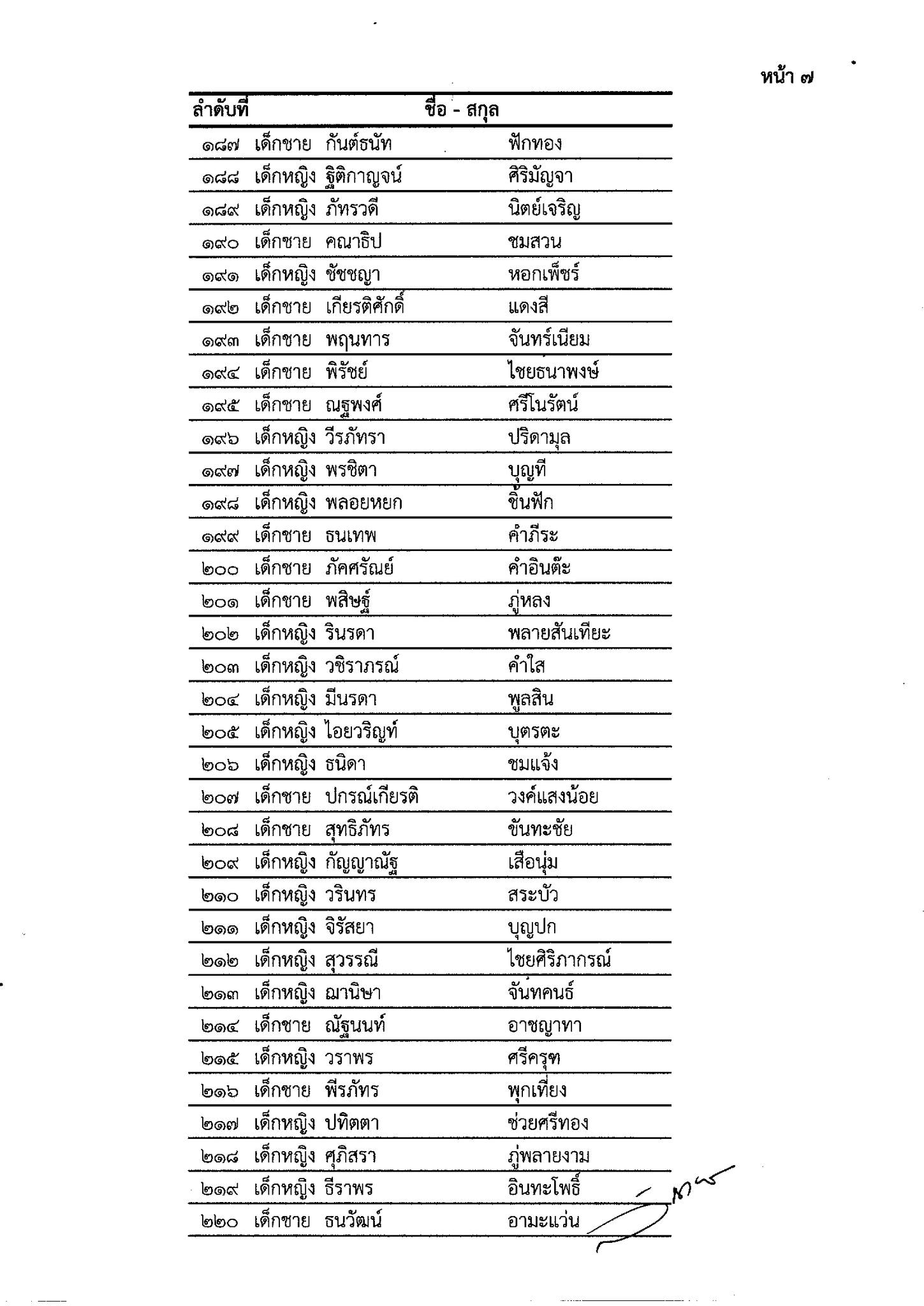 รายชื่อนักเรียนชั้นประถมศึกษาปีที่ 1 ประจำปีการศึกษา 2569